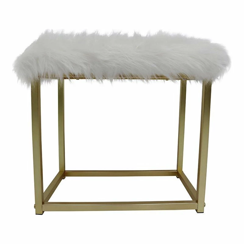 - Stool with faux fur over a foam seat cushion
