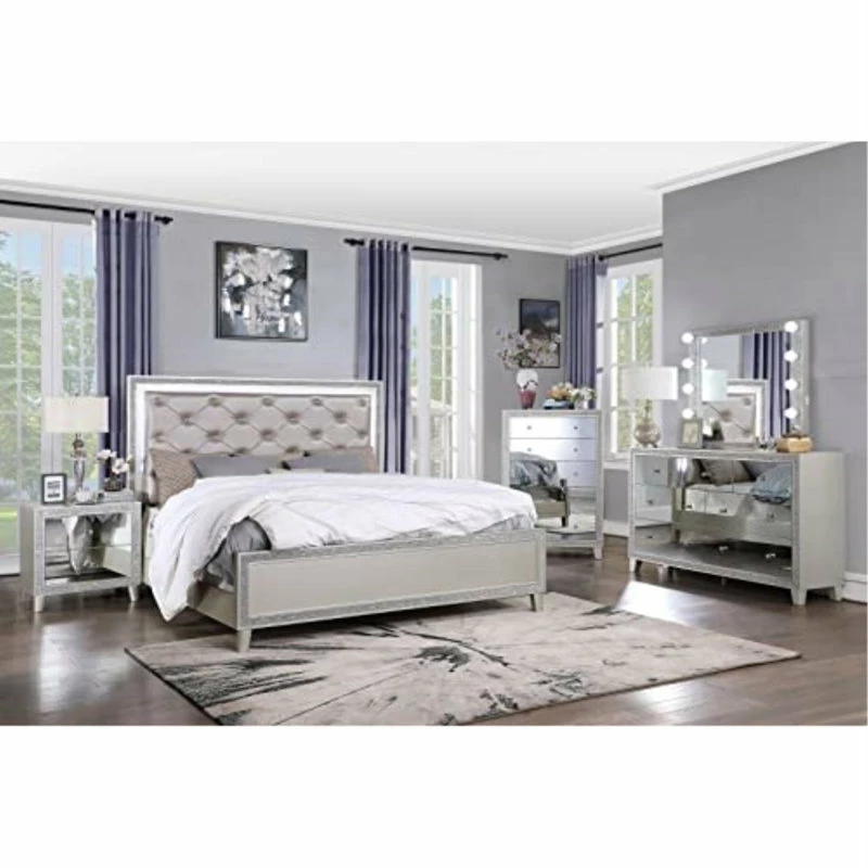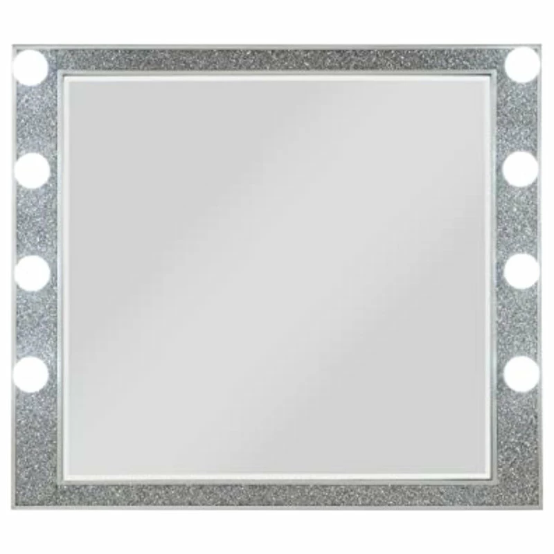 BD00245 – Mirror w/Light, Mirrored & Champagne Finish – SliverfluffAcme Furniture Sliverfluff, Mirrored, Champagne This modern glam style uses glitter trim, reflective surfaces, and metallic tone to brighten up your place. The mirror frame is adorned with eye-catching decorative accents like sparkling silver glitter trim and light bulbs. The mirror inlay in a clean rectangle shape gently reflects light that passes through the room. The Sliverfluff mirror will bathe your room decor in glamorous luster and elegant glow.