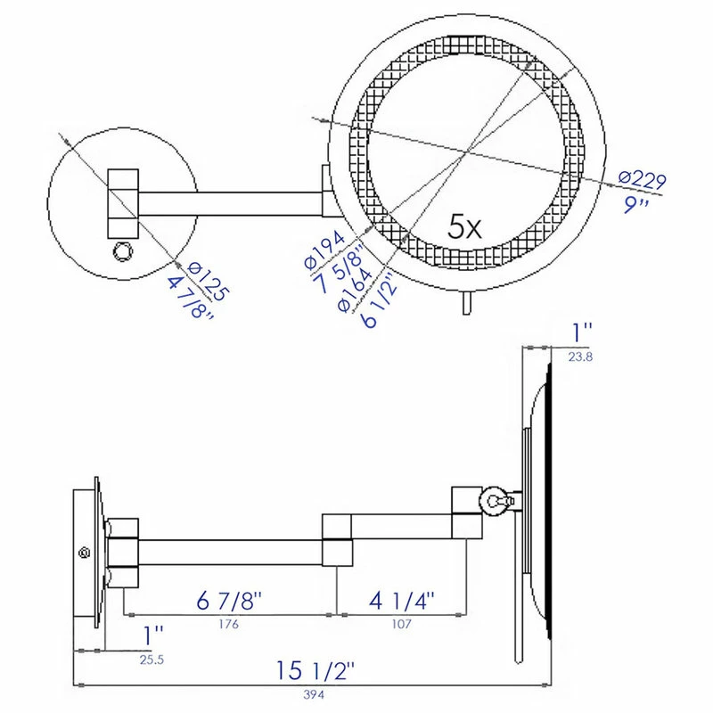 ALFI brand ABM9WLED-BN Brushed Nickel Wall Mount Round 9″ 5x Magnifying Cosmetic Mirror with Light