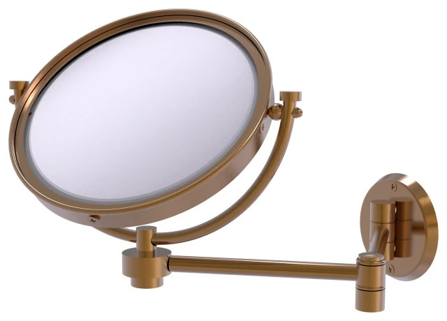 Add this stylish makeup mirror to your bathroom decor for an elegant touch. Makeup and shaving mirror pivots and tilts to allow for complete versatility in viewing angles while extending up to 14 Inches. Mirror is made from the finest solid brass materials. 8 inch double faced mirror features clear magnification on one side.