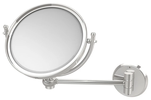 Add this stylish makeup mirror to your bathroom decor for an elegant touch. Makeup and shaving mirror pivots and tilts to allow for complete versatility in viewing angles while extending up to 7 Inches. Mirror is made from the finest solid brass materials. 8 inch double faced mirror features clear magnification on one side.