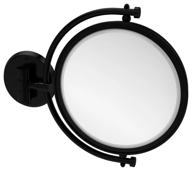 Add this stylish wall mounted makeup mirror to your bathroom decor for an elegant touch. Makeup and shaving mirror pivots and tilts to allow for complete versatility in viewing angles. Mirror is made from the finest solid brass materials. 8 inch double faced mirror features clear magnification on one side.