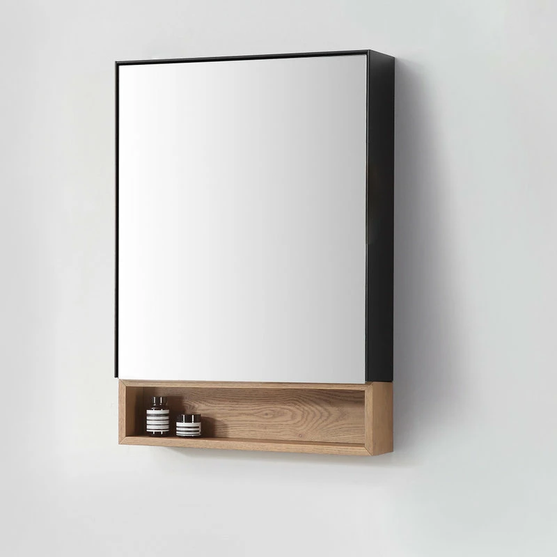 Cartisan Design is pleased to announce the Bergen medicine cabinet, shown in 24-inch Matte Black/Pecan Oak. The elegant mirrored door opens easily to reveal three shelves with ample storage space. Underneath, an additional sturdy shelf made of high quality wood emphasizes the unit’s utility. The clean lines and high quality build will bring a sense of organization and warmth to your bathing space.