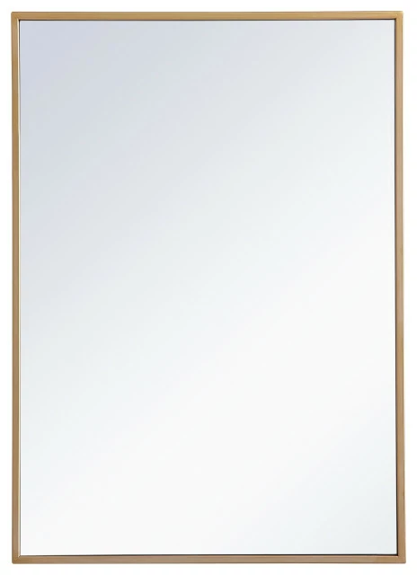 Elegant Decor MR572028BRS Metal mirror medicine cabinet 20 inch x 28 inch in BrassThe Wyn medicine cabinet reflects a minimalist’s design and trendy styling with its rust-free metal frame mirror. The classic clean and straight lines of this rectangular mirror provide you with a timeless and elegant look in your bathroom, featuring an ultra-thin metal frame in deep profile, reflecting a minimalist’s design and industrial styling. Open its door to the left or right to reveal two adjustable glass shelves for storing your toiletries. There are four metal keyhole hangers installed on the back of the mirror for easy installation, mounting hardware is not included. Constructed with a manufactured wood frame for exceptional strength and durability. Style: ModernCollection: WynFinish: BrassHardware Finish: chromeHardware Material: steelFixture Material: mdf, glass, metalDimension(in): 20(L) x 28(H) x 5(Dia)Assembly Required: noLocation: DampDimension(in): 0.16(L) x 19.2(W) x 27.2(H)Frame Shape: RectangleMirror Have Beveled Glass: noProduct Warranty: 1 year limited
