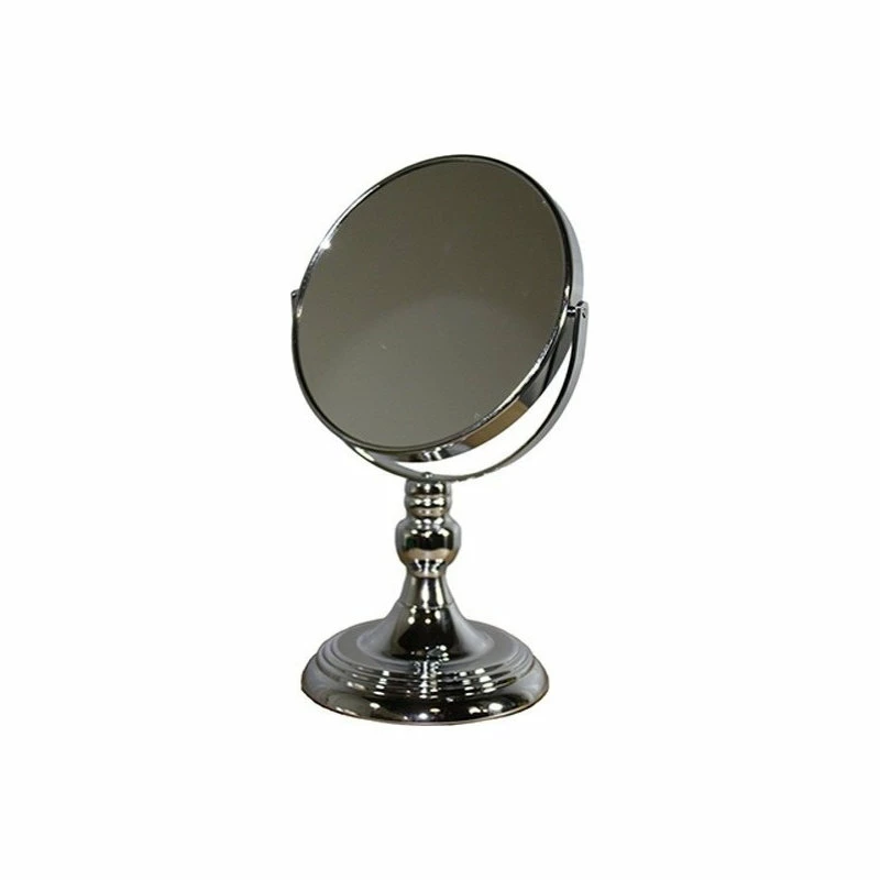 This stylish Vintage Style Chrome 5X Magnification Pedestal Vanity Mirror is the perfect solution for all your styling and makeup needs. This good looking vintage look shiny silver chrome base and frame features a two-sided mirror that will give you a crystal clear reflection so you can prep faster and easier. This handy mirror is moveable so you can adjust to the the perfect viewing angle. With a powerful x 5 magnifying mirror on one side, it is expertly designed to help you see the tiny details, better than you ever thought possible. Add so much style and powerful magnification to your vanity or bathroom with this great mirror. 12.3″H x 8.3″ W x 5.5″ D