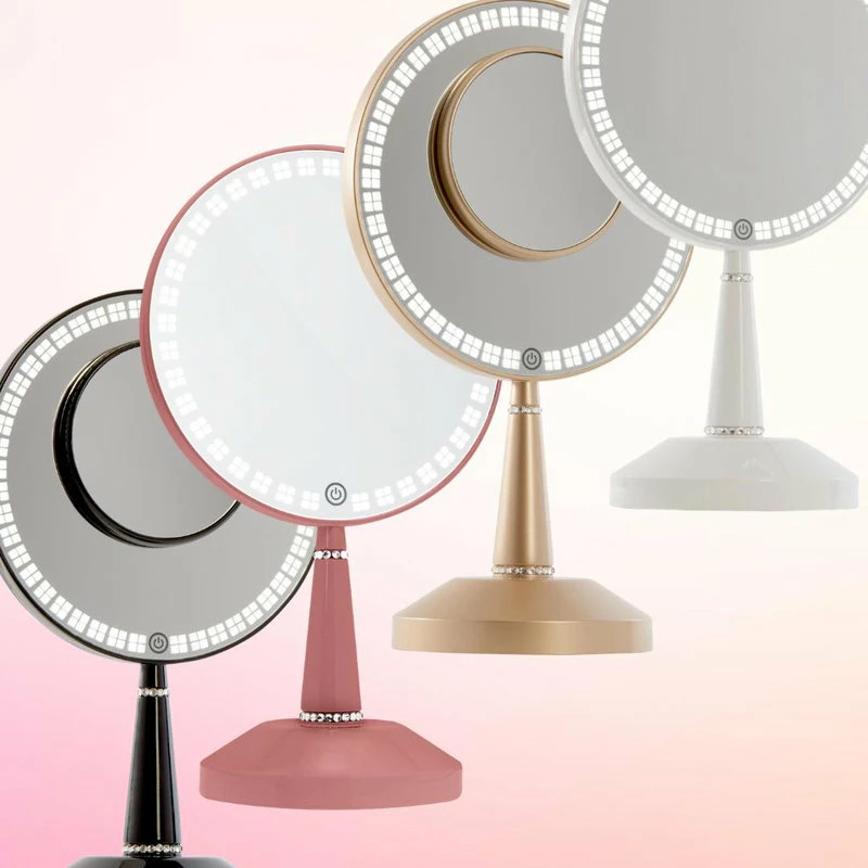 The handle features two rows of our diamond style design. Easily rechargeable by placing the mirror in its color matching charging base. The mirror has a built-in light indicator when the mirror is charging and fully charged.