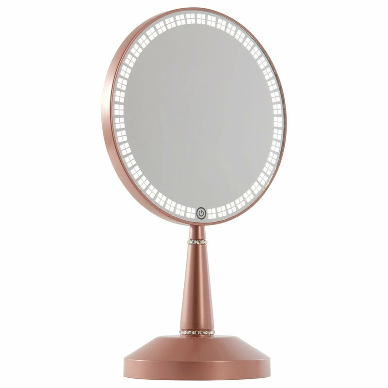 Impression Vanityโs Bijou LED Hand Mirror is the crowning jewel of hand mirrors! The Bijou features a modern pattern of bright LED lights with adjustable brightness. Simply tap the mirror built-in touch sensor to turn on the mirror and press and hold to dim the lights to the level you desire. Includes a 5x magnifying mirror for close up work!