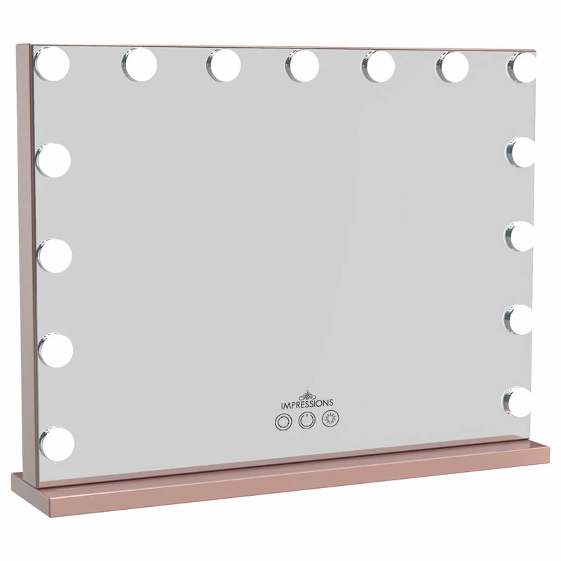 The Impressions Vanity Hollywood Aurora Vanity Mirror is the modern vanity experience, a sleek yet glamorous design that provides a perfect, even lighting and superior mirror reflection clarity. Ideal for makeup application at any setting, home or professional, also for taking that perfect Instagram selfie!