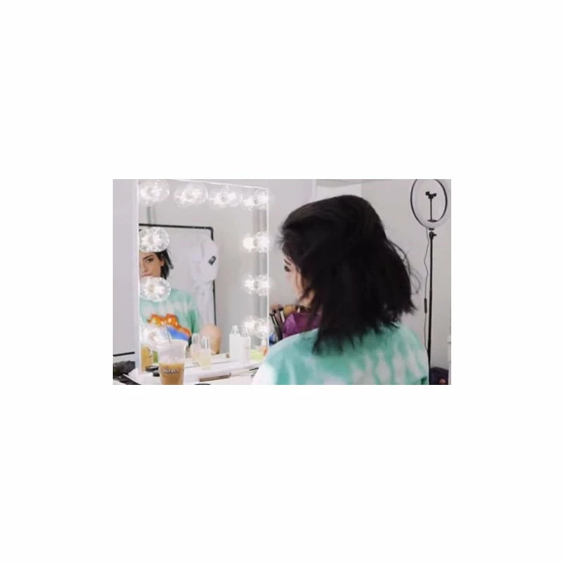 Your favorite Hollywood Glow Vanity Mirror is now built with a lighter aluminum body! This mirror is designed with a contemporary frameless design, but still has the classic Hollywood Mirror look with the surrounding 10 bulbs. Includes a base to fit on any vanity station.