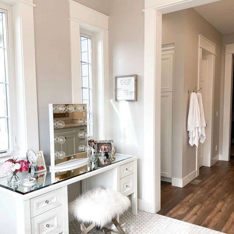 Power up the mirror with the switch on the side and adjust the brightness to your perfect level with the built-in dimmer switch. Equipped with a side outlet to easily plug-in and power your vanity accessories or charge your phone!