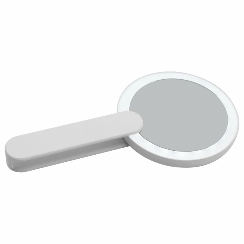 Our uniquely styled LED Swivel Makeup Mirror that lets you look your best. This handheld on-the-go mirror glows with the ring LED lights to illuminate your entire face.