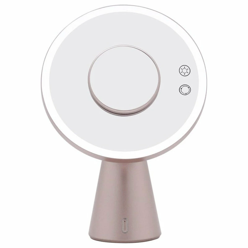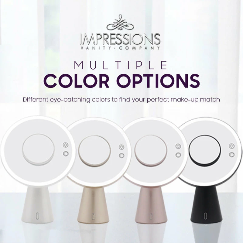 A makeup mirror for both day and night, the Luna! This high clarity mirror is equipped with a surrounding bright LED light strip and is rechargeable. Power it up by tapping the touch sensor on/off button that is directly on the mirror. Adjust the brightness to your ideal level by holding the power button. This mirror also features duo-tone lighting! Simply tap the change button on the mirror to switch between natural, cool, and warm lighting.