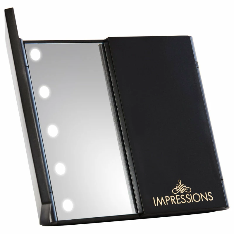 Glam on the go like a pro with Impression Vanityโsยฎ Nova Wireless Charging Tri-fold LED compact mirror. comes with built-in illuminating LED lights with adjustable brightness to illuminate your glow!