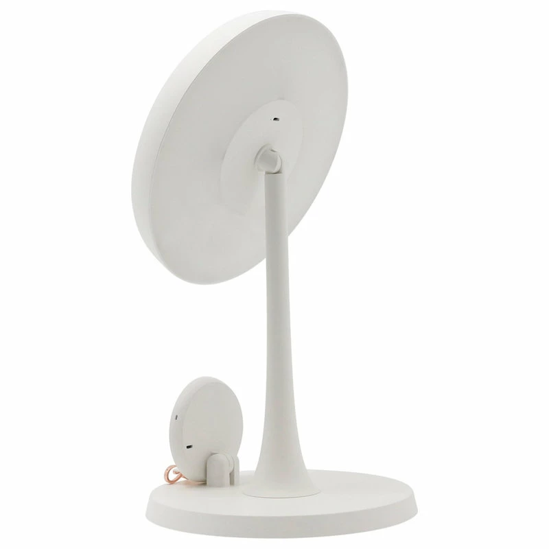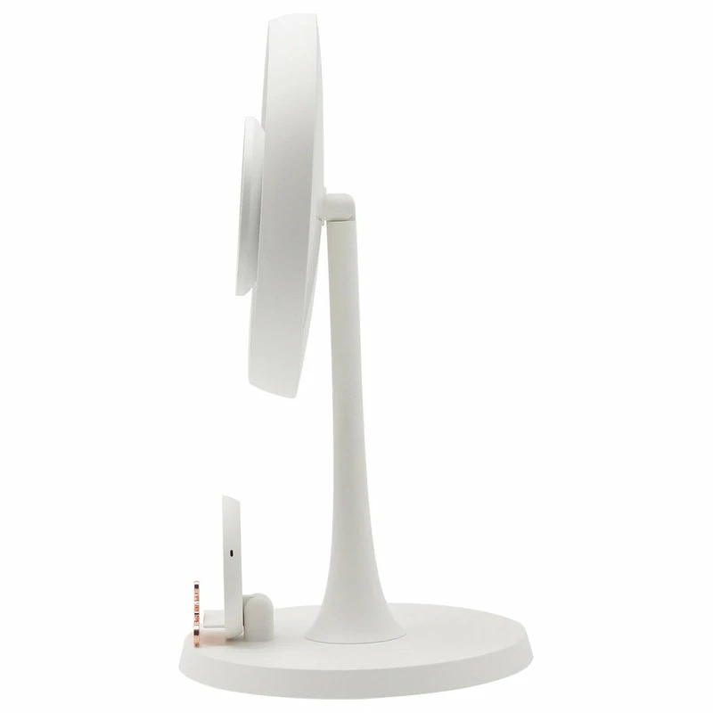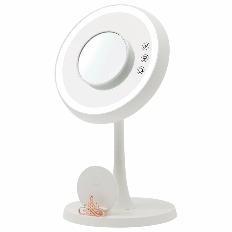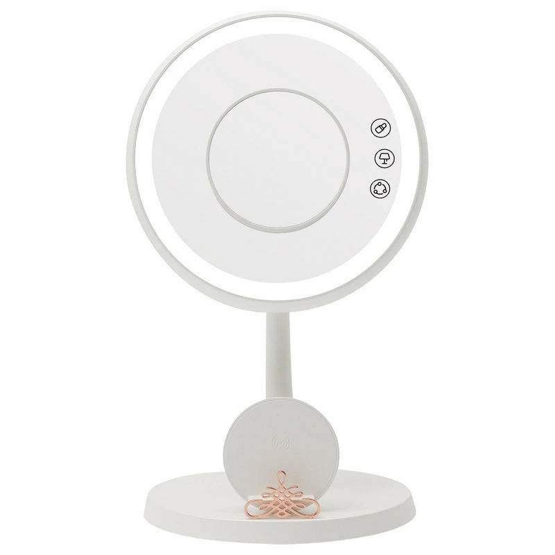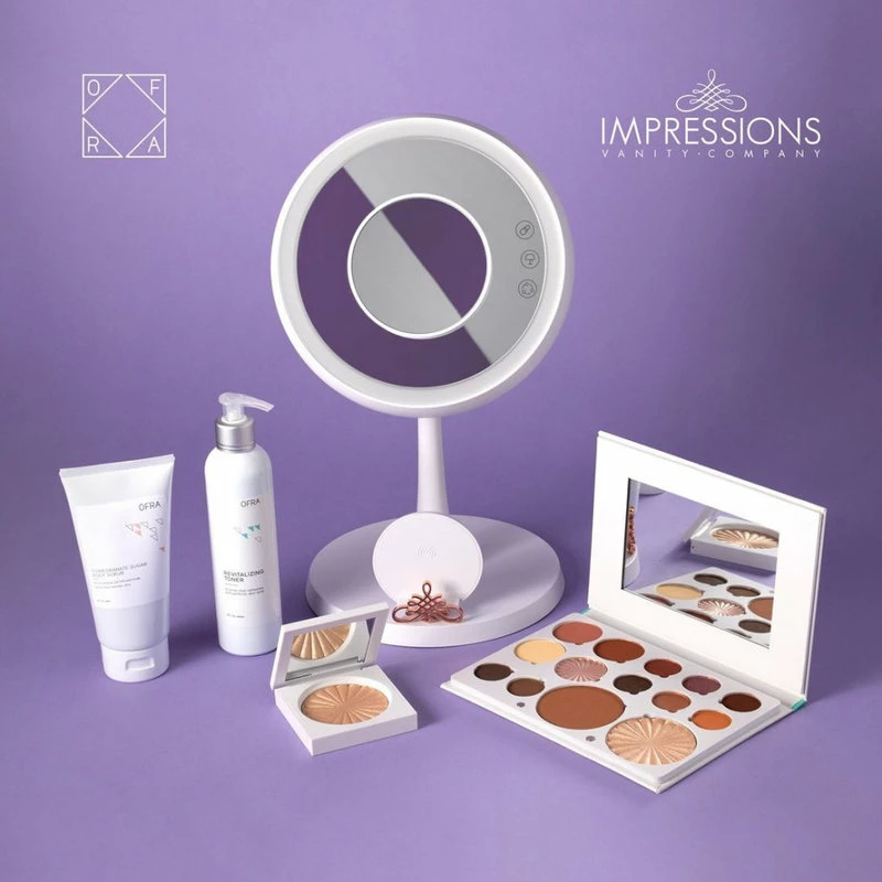 Reach the ultimate level of peace and tranquility with the multi-faceted tri-tone LED lamp mirror, the Serenity. Download the “Impressions Glow” app to enjoy the many innovative features and customizable functions. This stylish makeup mirror offers a base plate to store your most precious jewelry items. The round framed mirror itself offers a 360 degree tilt along with a soft touch dimmable sensor switch. A 5x magnifying mirror comes included.
