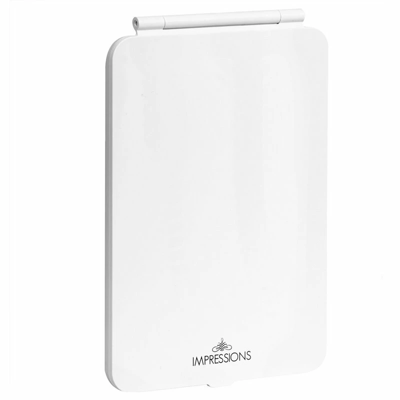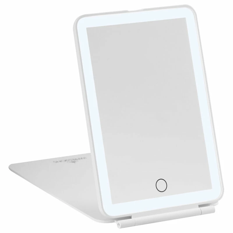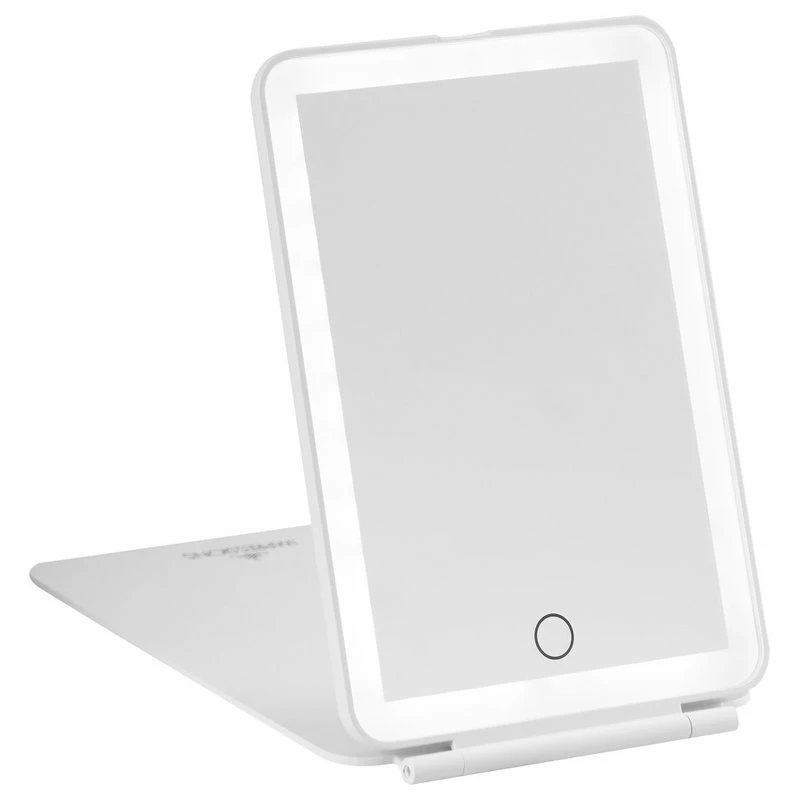 The Touch Pad Mini Makeup Mirror with Flip Cover has it all for vanity on the go! With its sleek and slim design, it can be conveniently stored. The flip cover helps protect the mirror from damage and functions as a stand when you use your mirror!