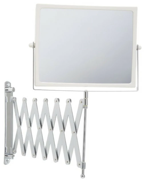 The Jerdon J2020C 8.3-Inch Two-Sided Swivel Wall Mount Mirror is used in luxury hotels and spas because of its convenience, sleek look and magnification. The two-sided square mirror measures 8.3-inches by 6.5-inches and features a smooth 360-degree swivel design that provides 1x and 5x magnification options to make sure every detail of your hair and makeup are in place. The extension arm and smooth rotation adjusts to all angles for a dynamic point of view. The J2020C extends 30-inches from the wall and can be easily moved around, while still being firm enough to hold for odd angles. This mirror has an attractive chrome and white finish that protects against moisture and condensation and is designed to be wall mounted. This item comes complete with mounting hardware. The Jerdon J2020C 8.3-Inch Two-Sided Swivel Wall Mount Mirror comes with a 1-year limited warranty that protects against any defects due to faulty material or workmanship. The Jerdon Style company has earned a reputation for excellence in the beauty industry with its broad range of quality cosmetic mirrors (including vanity, lighted and wall mount mirrors), hair dryers and other styling appliances. Since 1977, the Jerdon brand has been a leading provider to the finest homes, hotels, resorts, cruise ships and spas worldwide. The company continues to build its position in the market by both improving its existing line with the latest technology, developing new products and expanding its offerings to meet the growing needs of its customers.