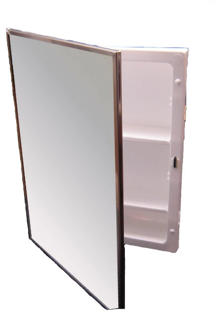 - Specifications: White high impact injection molded polystyrene rust proof medicine cabinet.