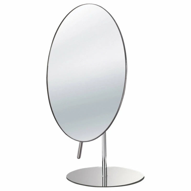 Round free-standing 3x magnifying adjustable mirror, Diam: 8″ H: 11 7/8″