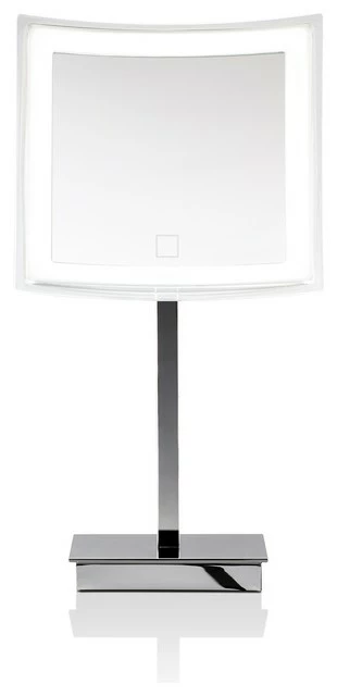 Smile 830T, Battery Operated Magnifying Mirror with Dimmable LED Light, 5x Magnification, Made in Germany. The Smile 830T is from the Smile Touch Collection of German Made LED Lighted Magnifying Mirrors that have Continuously Adjustable Light Colors.