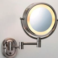 Brand new ❤️ SEE ALL INDUSTRIES Modern Wall Mounted Nickel Make-Up Mirror, Direct Hardwiring 🎉