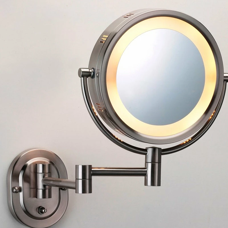 Brand new โค๏ธ SEE ALL INDUSTRIES Modern Wall Mounted Nickel Make-Up Mirror, Direct Hardwiring ๐