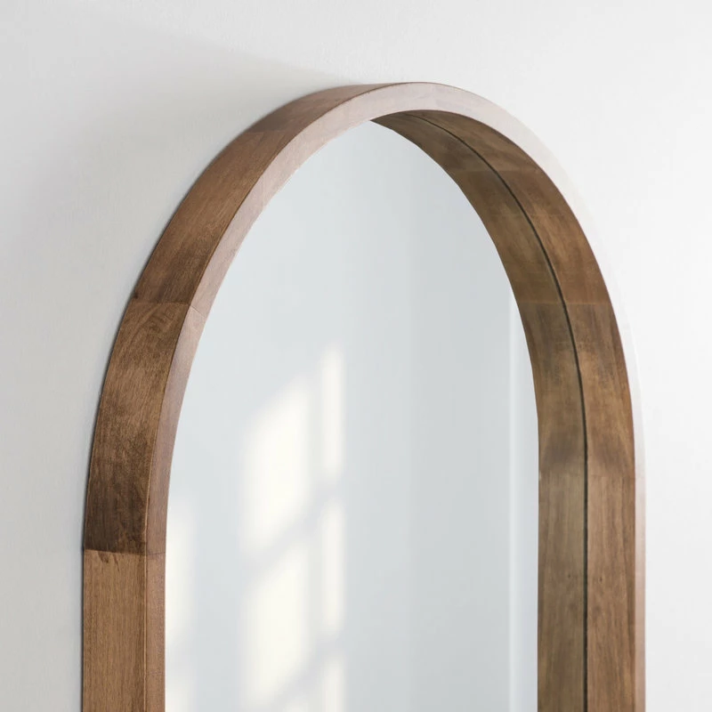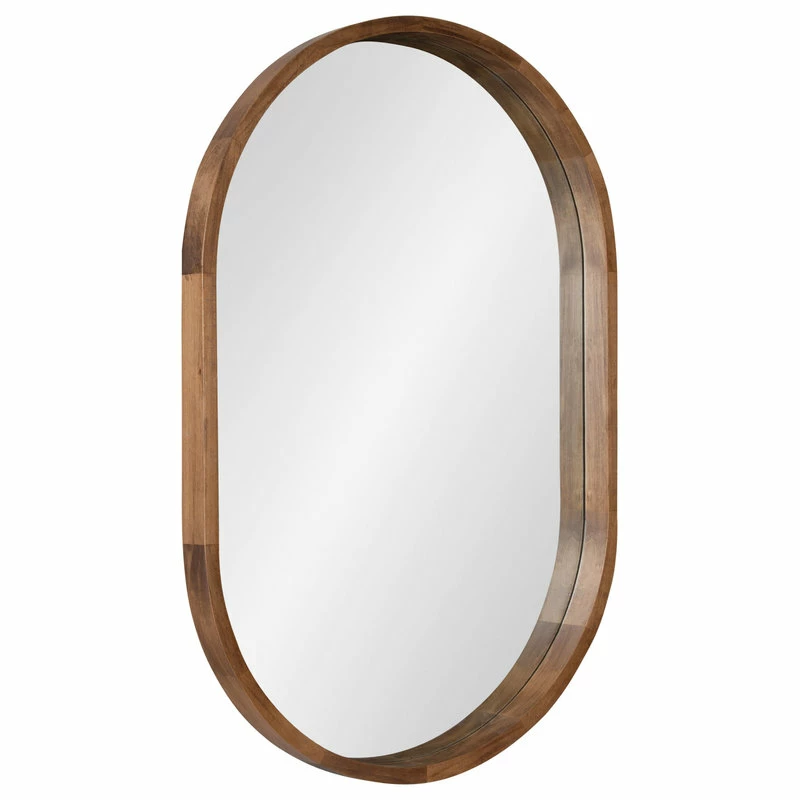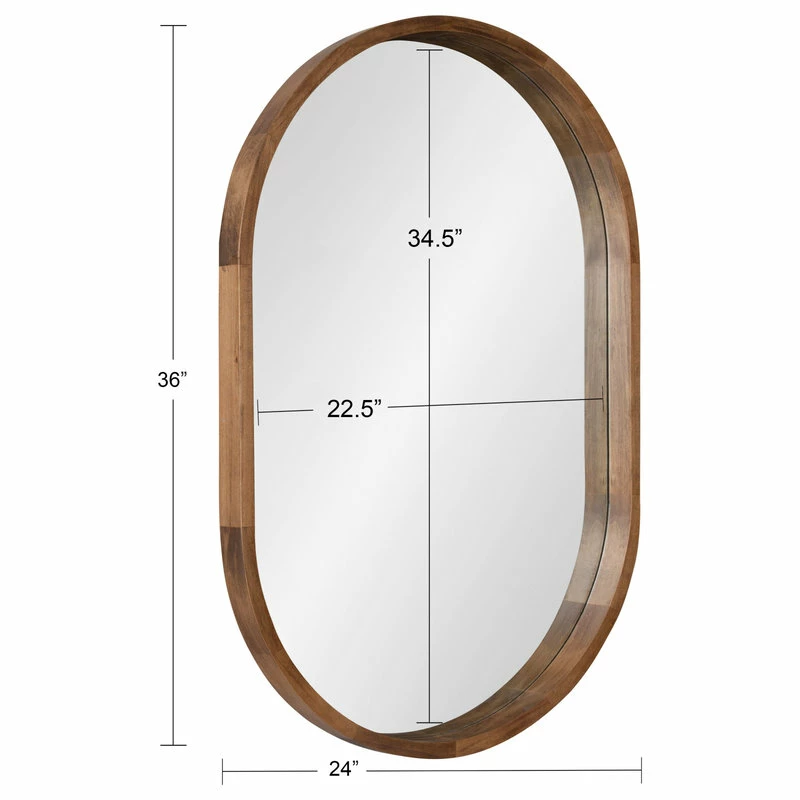 This mirror is perfect for unleashing your inner bohemian and redecorating your space with a transitional, casual look. The Hutton was designed with robust premium poplar wood, providing high-quality durability, a lovely texture, and a bold style. The capsule shape is perfect for introducing soft geometry to your space and highlighting a sense of relaxing boho charm. Its overall dimensions are 24 inches by 2 inches by 36 inches, creating a commanding statement piece that functions well in various spaces. Use the Hutton mirror to bring vibrancy to your space, using the wide surface area to increase the spread of light and make your room appear brighter. It looks great in vertical and horizontal orientations, pairing well with your mantle, console table, sofa, or bed. If you’re looking to start renovating your bathroom with a relaxing vibe, the Hutton works well as a bathroom mirror in a single or double vanity. Hang this mirror in a matter of minutes with the metal D-ring hangers that are attached to the MDF back.